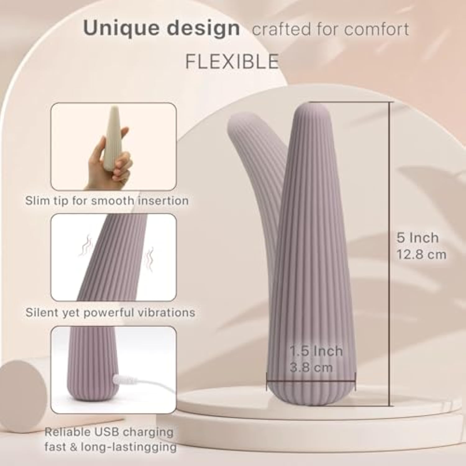 | 10 Vibration Settings: Vibrating Massager Is Super Comfortable And Useful. Easy One Button Operation To Find Your Perfect Style And Intensity. | | Smart Tapered Ribbed Design: Snug Insertion Due To Narrowing Tip And Delicate Lines. Soft Ribs And Flared End Ads More Excitement To Your Sexual Pleasure. | | High-Quality Soft Silicone: Featuring A Velvety Touch, The Bullet Vibrator Is Made With Body-Safe Soft Silicone That Is Skin-Friendly And Free From Phthalates, Bpa And Latex. | | Discrete And Pocket Sized: At 5″ In Length, It’S Perfectly The Size Of Satisfaction. Fits Easily In Your Purse So You Can Discreetly Take Anywhere. | | 100% Waterproof: This Flexible Vibrator Is Fully Waterproof, Making It Easy To Clean And Perfect For Enjoying In The Shower Or Bath | | Usb Rechargeable: Easy To Charge Anywhere! Long-Lasting Reliable Battery Provides You With Comfortable Relaxing Pleasure. | |