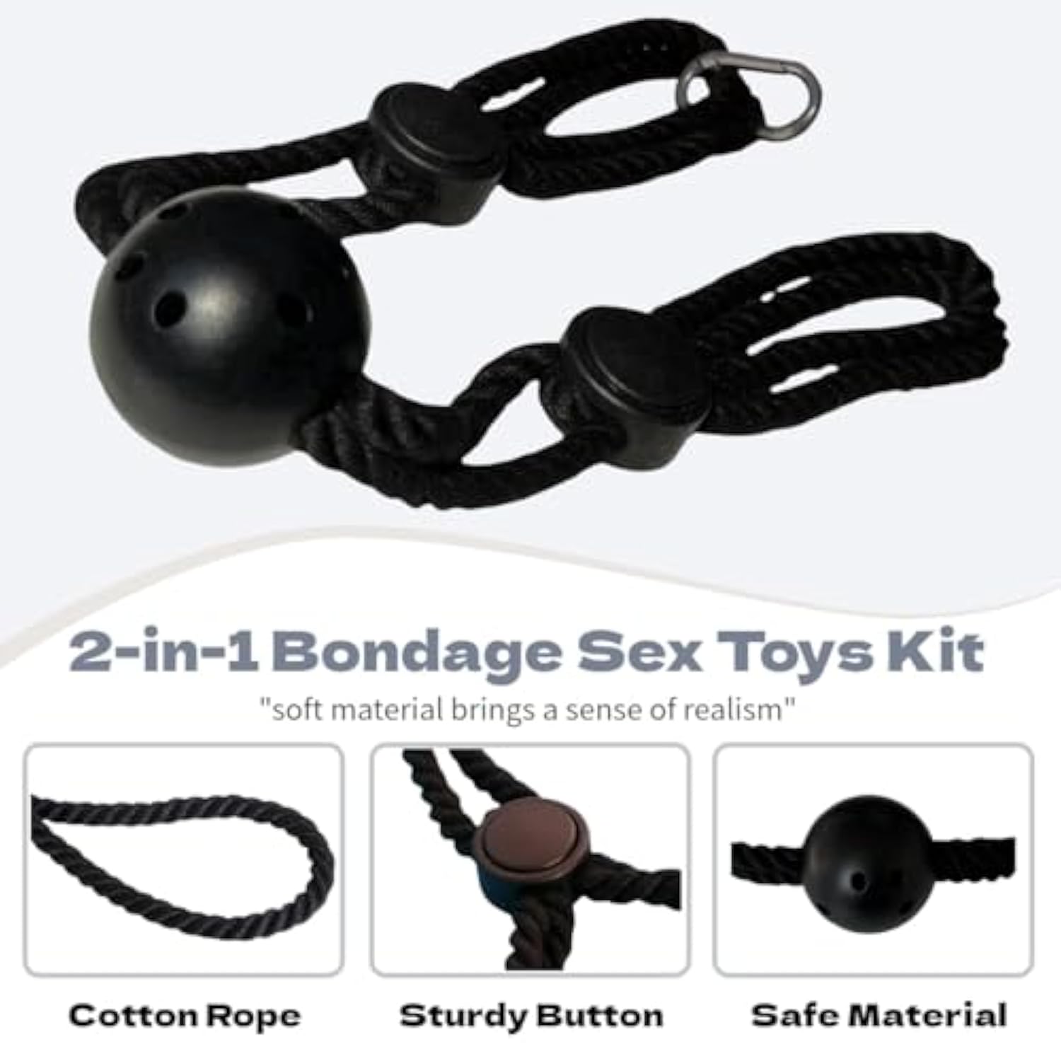 | Bondage Rope Handcuffs: Elevate Your Intimate Moments With This Bondage Rope Handcuff Set, Designed For Role Playing And Sparking Passion. The Adjustable Button S A Snug And Comfortable Fit, Suitable For Restraining Hands And Adding Flexibility To Your Fantasies. Ideal For Couples Looking To Explore Bdsm, Cosplay, And Bondage Play, This Set Brings An Exciting New Dynamic To Your Bedroom Experiences | | Cotton Rope With A Comfortable Ball Gag: Crafted From Soft Cotton, The Rope Ensures A Gentle, Soothing Feel On The Skin, Making It Suitable For Extended Use. Paired With A Comfortable Ball Gag Designed To Prevent Irritation, This Set Is Ideal For Enhancing Your Intimate Moments With Ease And Pleasure | | Adjustable: Crafted With An Adjustable Design To Comfortably Fit Most Women And Men, These Cuffs Offer Secure, Escape Proof Restraint. They Enhance The Intensity And Excitement Of Your Intimate Moments, Providing A Truly Immersive Experience | | Multifunctional Bdsm Set: This Set Offers Versatility With A Soft Cotton Rope For Restraint And A Comfortable Ball Gag Secured By A Sturdy Metal Buckle. Designed To Silence Words While Amplifying Pleasure, It Enhances The Intensity Of Your Bdsm Sessions, Making It An Essential Tool For Exploring Various Levels Of Dominance And Submission | | Discreet Packaging: Each Item Comes Securely Wrapped In Black Packaging To Protect Your Privacy. Compact And Travel Friendly, It’S Easy To Carry, Enabling You To Enjoy Intimate Moments Wherever You Go | |