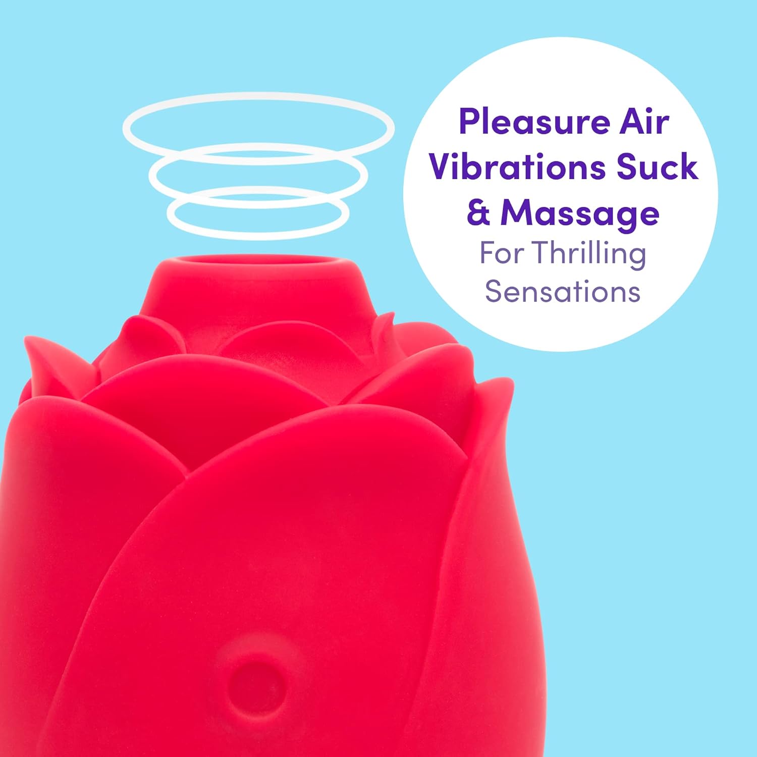 PLEASURE AIR VIBRATIONS SUCK AND MASSAGE FOR THRILLING SENSATIONS Featuring Lovehoneys innovative and patented Pleasure Air Technology, this rose bud female toy uses air pulses and sensual suction to stimulate and massage your sensitive nerve endings. These thrillingly seductive contactless caresses guide you to effortless and sensational climaxes, all at the touch of a button.