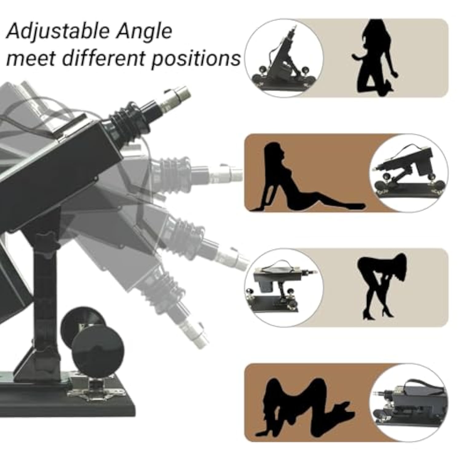 | Perfect For Couples, Solo Adventurers, And Disabled Individuals: Designed To Cater To A Wide Range Of Users, The A2Sex Machine Is Ideal For Couples Seeking To Spice Up Their Intimacy, Solo Explorers Looking For A Reliable Companion, And Individuals With Limited Mobility Who Desire A Hands-Free Solution For Pleasure | | Fully Adjustable Speed Angle For Personalized Pleasure: The Automatic Thrusting Machine Offers 0-85 Degree Angle Adjustment And Variable Speed Contro Automatic Thrusting From 0 – 450 Times Per Minute , Allowing Users To Customize Their Experience For Maximum Comfort And Satisfaction. Whether You Prefer Slow And Sensual Or Fast And Intense, This Machine Adapts To Your Desires Effortlessly | | Interchangeable Dildos For Endless Variety:The A2 Dildo Machine Comes With Multiple Compatible Dildos, Each Offering A Unique Texture, Size, And Sensation. Switch Between Attachments To Explore Different Levels Of Freshness And Excitement, Keeping Your Experience Thrilling And New Every Time | | Secure Suction Base Assured Quick And Hassle-Free Usage: 4 Sturdy Suction Cup Base Keeps The Thrusting Machine Firmly In Place During Use If You Put The Automatic Thrusting Machine On Smooth Surface.Thanks To Its User-Friendly Design. With No Complicated Tools Or Steps Required, You Can Start Enjoying Your Machine Just By Pluging In Socket. Its Sturdy Construction Ensures Stability During Use, Providing A Seamless And Worry-Free Experience | | Lightweight, And Easy To Carry In Discreet Package:With Its Portable Design, The A2 Automatic Sex Machine Is Perfect For On-The-Go Use. Whether You’Re Traveling Or Simply Want To Store It Discreetly, Its Compact Size And Lightweight Build Make It Easy To Transport And Store Without Compromising On Performance | |
