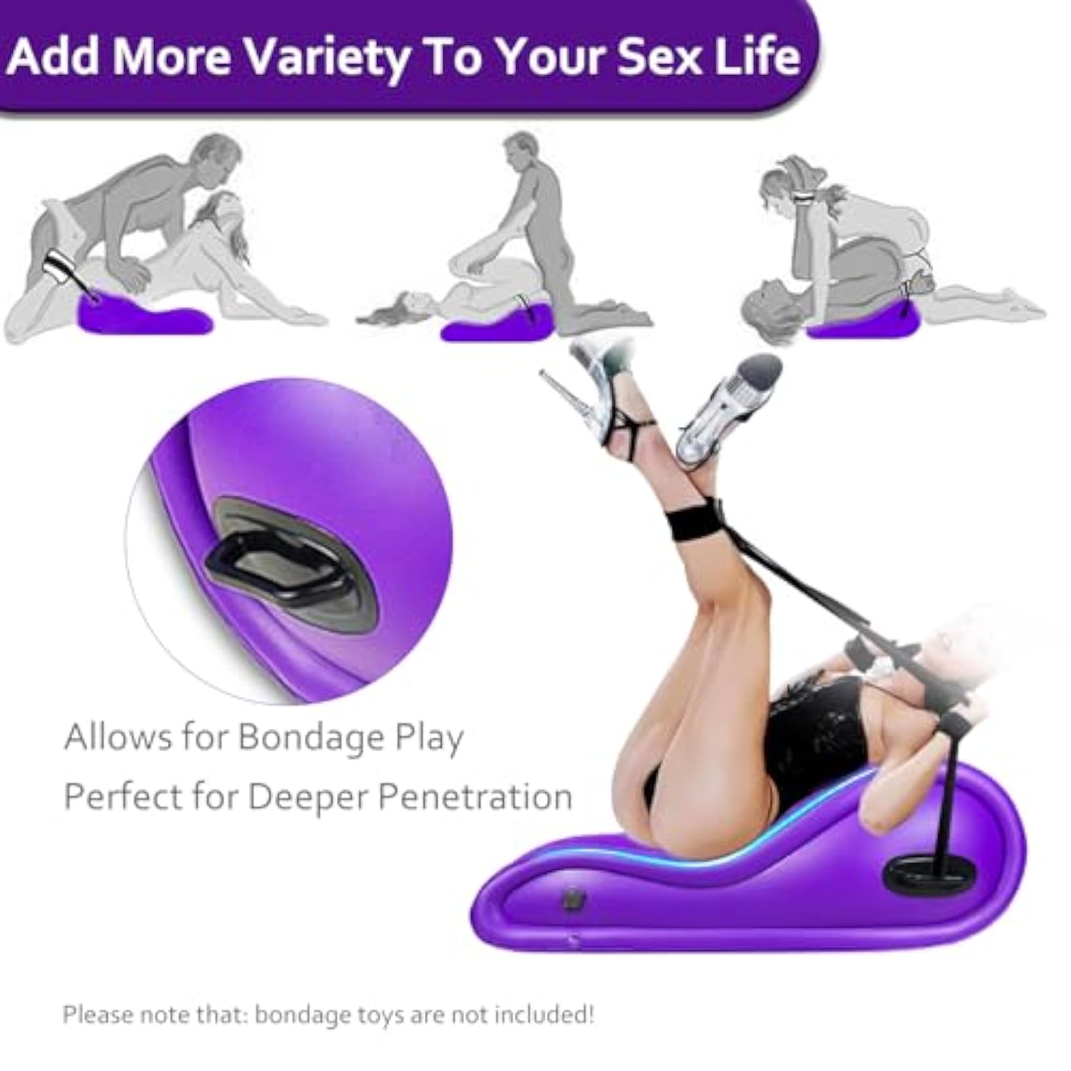 | ?High Low Sexy Curves? This Inflatable Sex Furniture Has Sculpted Contours That Hug Your Body And Provide Support And Lift Precisely Where You Want It. The Sweeping Arches Give You And Your Lover Greater Access To An Assortment Of New Sex Positions That Both Thrill And Intensify Sensations. The Sex Position Pillow Is Endowed With High And Low Curves That Fits Your Body’S Natural Form To Take Stress Off Knees And Other Joints And Relieve Pressure On Muscles. | | ?Luxurious Velvety Surface? This Sex Pillows Feature Of Velvety Flocked Surface, Feels Terrific Against Bare Skin. Making Your Experience Feel Even More Sensual. And It Prevents Slipping. So The Womens Sex Toys Will Keep You In Place And Comfortable – No Matter What Angle You’Re In. | | ?Add More Variety To Your Sex Life? Ideal For Doggy, Missionary, And Cowgirl Positions, The Sex Cushion Gives You Just The Right Amount Of Lift And Access By Boosting Your Body And Booty Upward. Perfect For Deeper Penetration, More Energetic Thrusts, Increased Stimulation And More Enjoyable Oral. | | ?Play With Bondage Gear Accessories? This Sex Toys Equipped With Two Handles, Which Allows For Easy Bondage Play. Attach The Bondage Restraints (Like Sex Handcuff) Onto The Handles Or Attach The Bdsm Kit To Each Other For Endless Positions And Exploring Your Deepest Fantasies. Please Note That: Bondage Restraints Are Not Included. | | ?Thick Durable? This Sex Toy Pillow Is Using Thick Material And Upgraded Air Seal Valve. Making It Support Up To 300 Ibs Strongly And Firmly And Will Not Collapse. The Air Seal Valve Lets You Inflate Or Deflate It Easily. And It’S Foldable, Easy To Carry And Can Be Used At Home, Outdoors, Parties, And Travel To Add Fun. | |