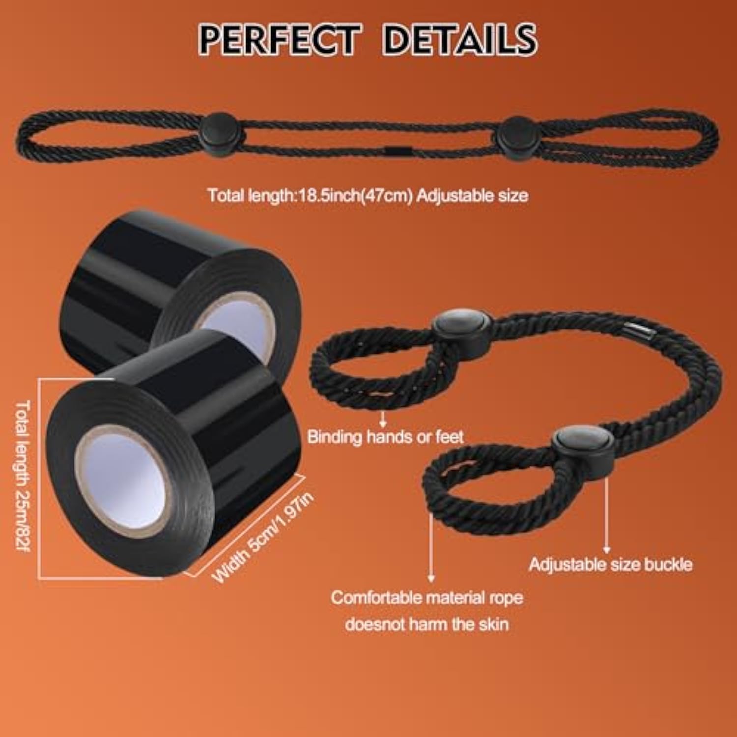 Sex Toys Bdsm Bondage Restraint Bundle Set, Rope Handcuffs Leg Cuffs Wrist Cuffs 2-Piece Set Sex Bondage And Pvc Static Tape 82.2Ft (2 Rolls) For Beginner Adult Sm Men And Women Games (Black)