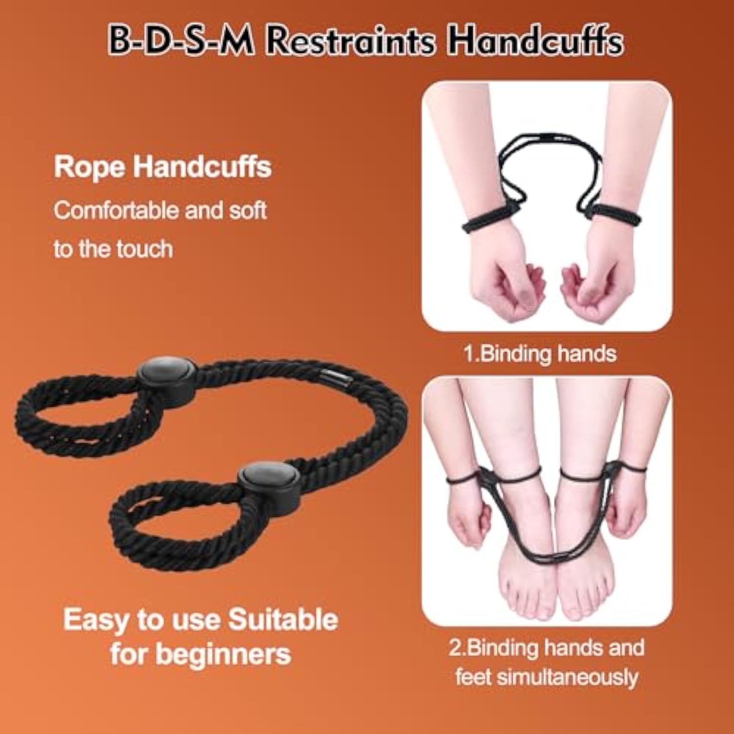| 1. Adjustable Sex Rope Handcuffs And Leg Cuffs: This Adjustable Buckle Adult Bondage Rope Is Suitable For Playing Bdsm Role-Playing Games. Tie Up Your Partner/Sex Slave, Tie Their Hands Or Feet Together, Ensure A Safe Restraint That Cannot Be Escaped, And You Fully Control Her To Enhance The Passion In Bed | | 2. High-Quality Material Rope Cuffs: Ours Is Made Of High-Quality Double-Layer Braided Cotton Rope, Which Is Soft And Comfortable To Touch, Does Not Hurt The Skin, Is Strong And Durable, Has Strong Restraint, And Can Be Reused, Suitable For Men And Women’S Fun Games, Increasing The Intensity And Fun Of Intimate