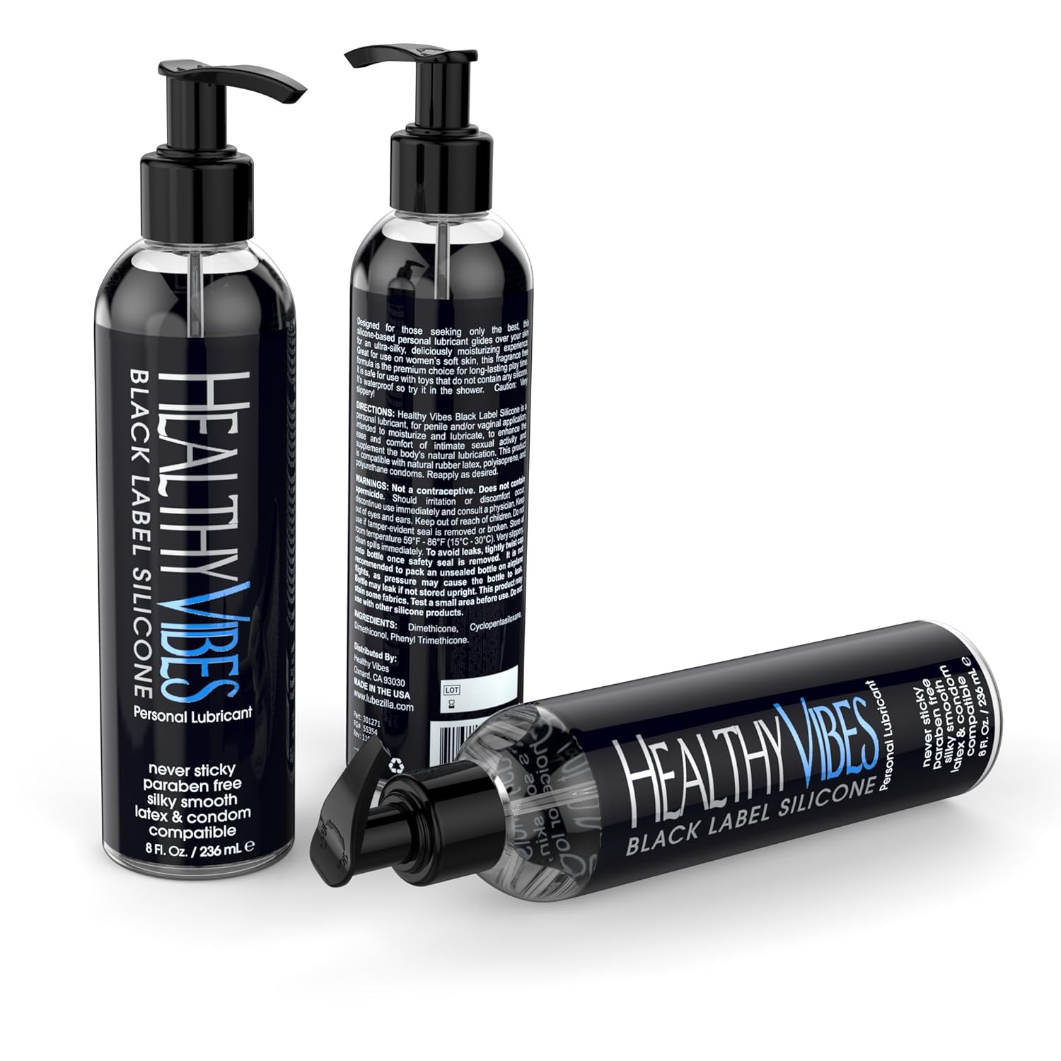 • ENHANCE YOUR SEXUAL EXPERIENCES – Healthy Vibes Black Label Silicone Lubricant is an award-winning lube that is safe to use with latex condoms. Its high-quality silicone-based formula ensures it stays slippery during anal play without getting sticky or tacky. It’s free of numbing agents, allowing you to still feel everything while staying comfortable. It works great for most skin types, and is a top choice for wellness and pleasure.