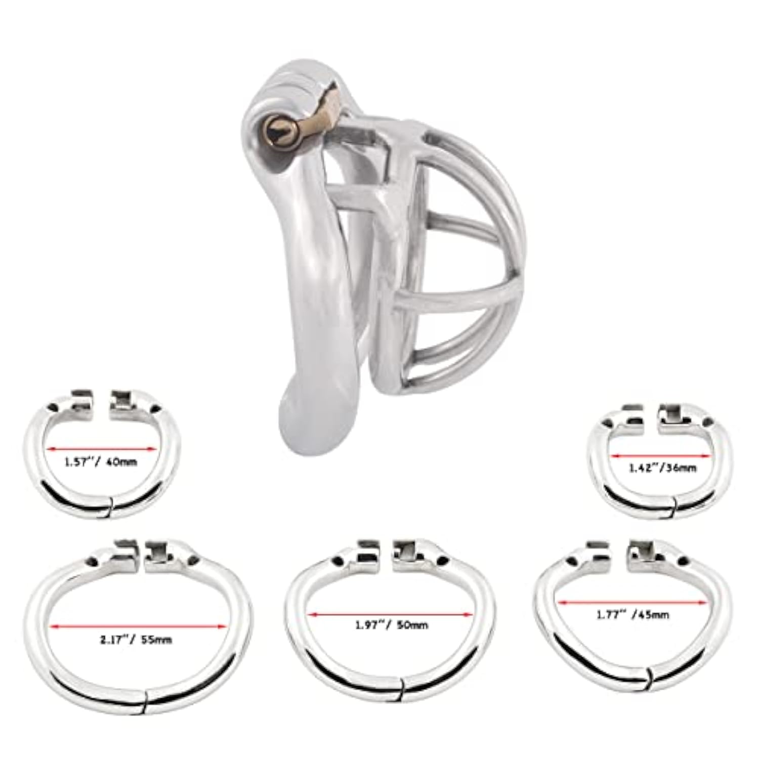 | Ergonomic Design, Easy To Wear Curved Split Ring , More Comfortable Than Common Chastity Device. | | Real Stainless Steel, Not Plating And Hypoallergenic, Manual Mirror Polished, More Sleek, More Comfortable. | | Stealth Lock Design, No Sound Of Metal Colliding With Each Other, More Protective Of Your Privacy. | | Chastity Cage Has 5 Different Sizes Of Rings To Meet Your Size, Fit For Most People. | | Protect Privacy: Opaque Package, Product Information Won’T Be Shown In The Package Or Customs Declaration. | |