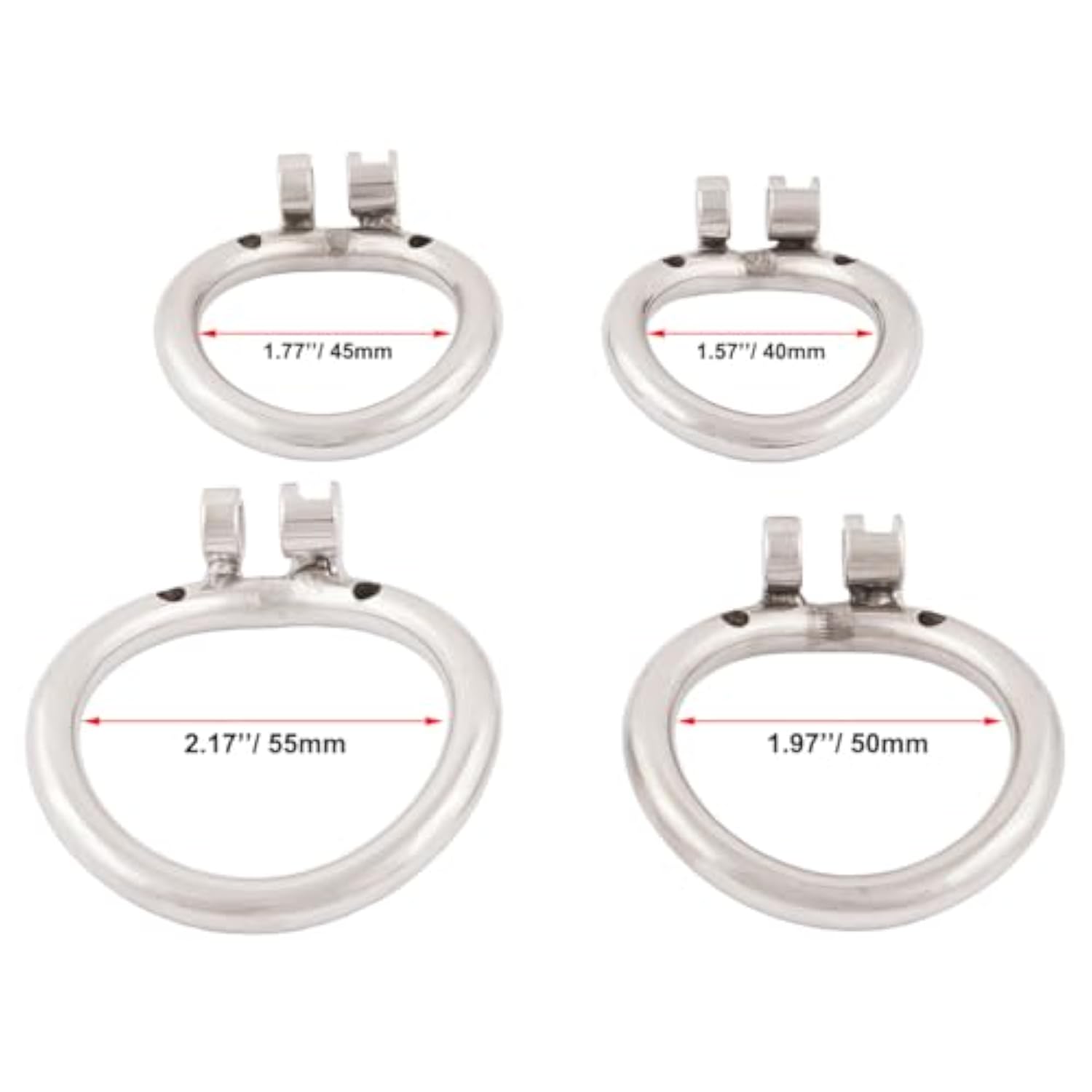 | Original Chastity Device Ergonomic Design Base Ring. Only Base Ring, Not Including Cage And Lock. | | This Base Ring Is Compatible With Cock Cage With A 1.22 Inch Positioning Hole. | | 100% Brand New, Real Stainless Steel, Not Plating And Hypoallergenic. | | 4 Different Ring Sizes (1.57”, 1.77”, 1.97”, 2.17”) Available Choose The Suitable Inner Diameter. | | Hand-Buffing, More Sleek, More Comfortable And Safe. Easy Cleaning With Body Wash. | |