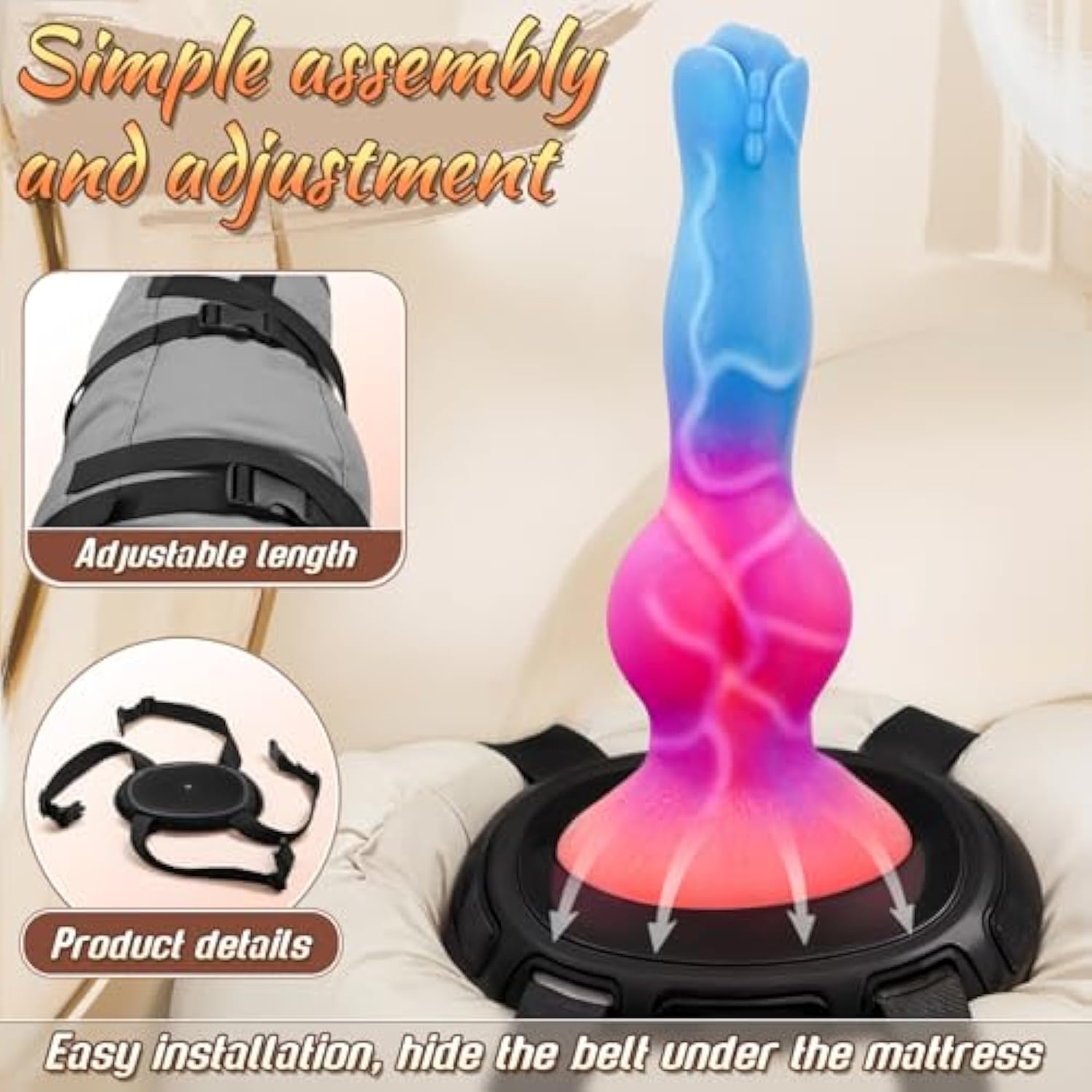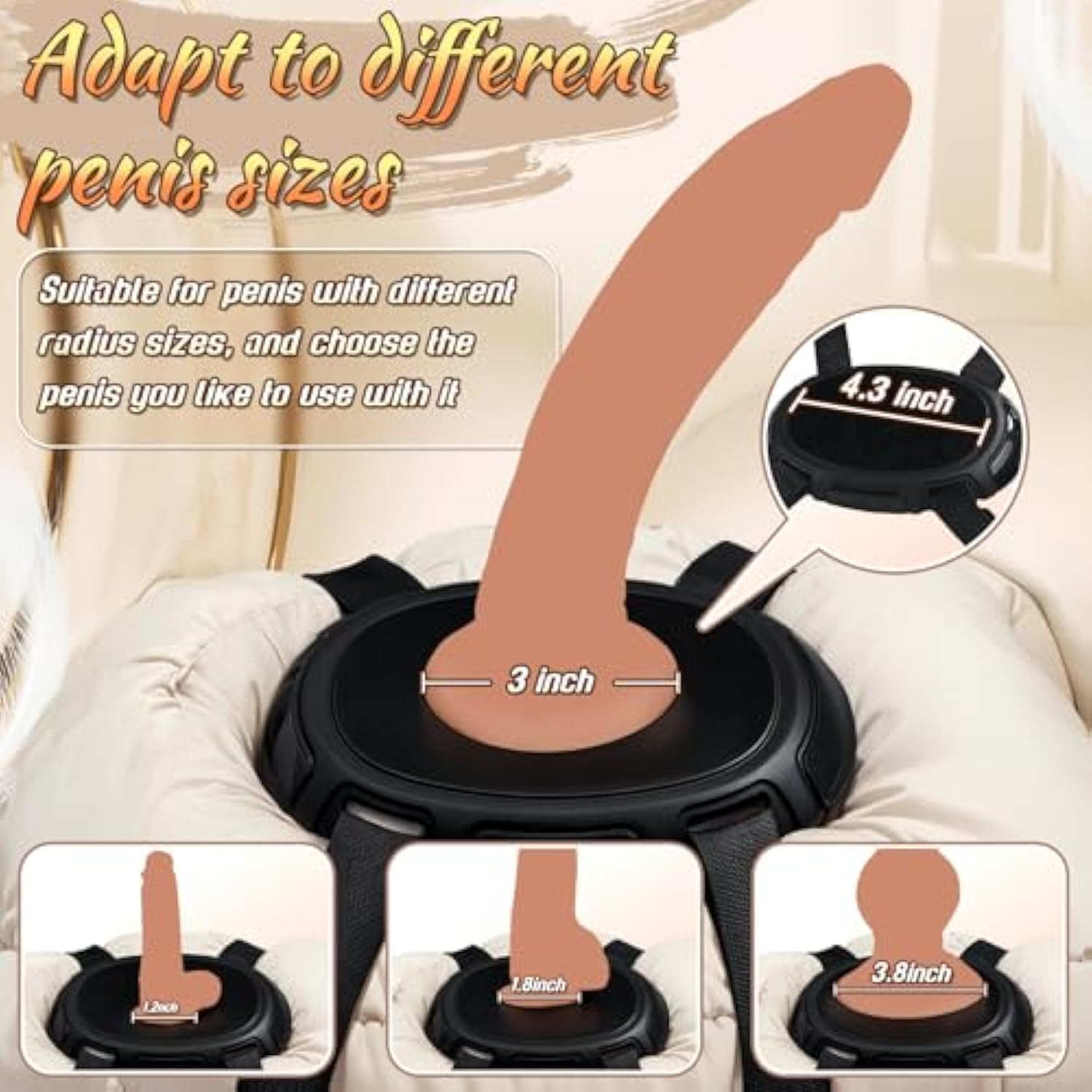 The Universal Dildo Mount Straps Securely To Any Pillow Or Rolled Up Towel Transforming It Into A Sex Pillow. Wrap The Straps Around Your Favorite Pillow Or Any Surface, Rolled-Up Towel Or Blanket And Attach Your Suction-Cup Toy To The Mount. Pleasure Yourself In Comfortable Positions Or With A Partner. | | Perfect For Exploring Solo Or With A Partner., The Dildo Mount Set Won’T Irritate Your Inner Thighs While Straddling And Is Super Easy To Clean. | | The Adjustable Straps Ensure A Perfect Fit For Any Pillow And The Large Platform Can Accommodate A Variety Of Suction Cup Dildo Sizes. Fitting Any Dildo With A Suction Cup Base 3.4″ Diameter Or Less. Its Straps Adjust To Fit Circumferences Up To 40″. | | The Dildo Mount Strap Set Come With Two Strong 40″ Nylon Buckle Straps To Place Around Pillows Or Any Non-Hard Surface For Your Comfort. The Oval Where You Mount Your Toys Sits Lower To Help It Not Easily Slide Off. | | Discreet Package: Our Sex Toys Will Be Neatly Packaged In A Discreet Package. Please Feel Free To