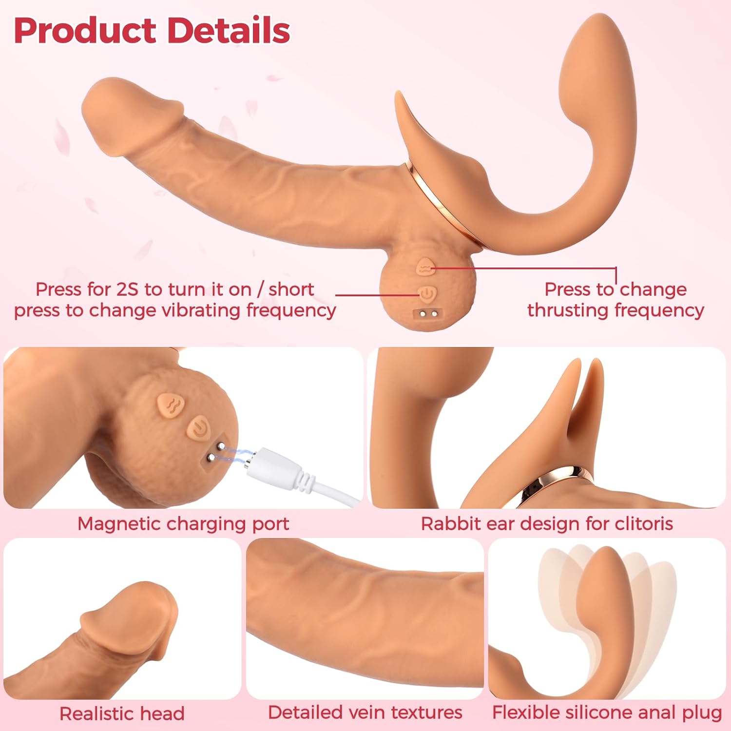 • ? ?Double Head?Intensify your G-spot and anal penetration with the specially curved and big-headed design of this adult rabbit ear vibrator. Double motor and double head available.360 free and controllable. Experience mind-blowing orgasms every time.
