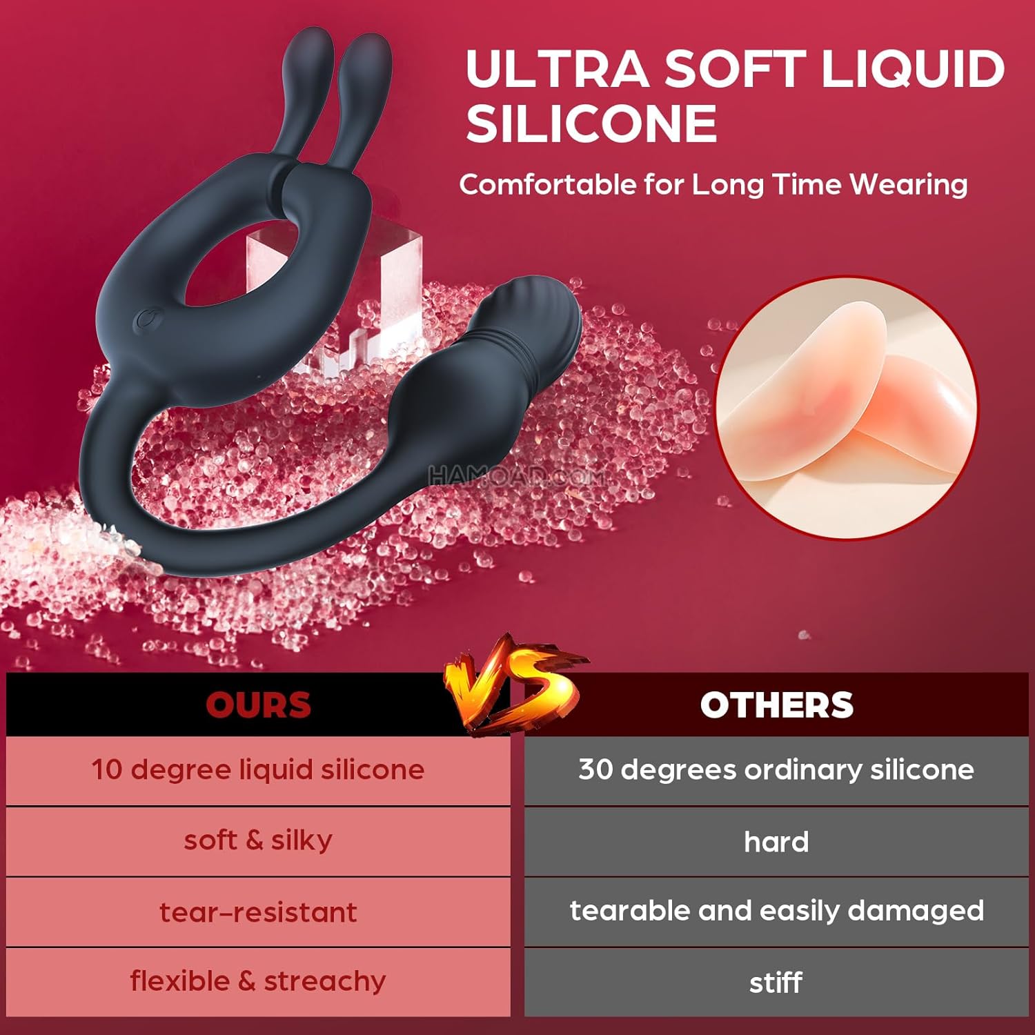 • ?Multifunctional Bunny Vibrating Cock Ring with Unique Magnetic Adsorption Design ?The penis ring cleverly utilizes magnetic physics, ensuring a snug yet comfortable fit no matter your shaft size types. You’ll love feeling the good vibes shaking through your memeber, promoting longer, stronger erections and delaying climax. The penis ring has 2 rabbit ears designed to stimulate the testicular, clitoral, or anal areas, depending on how mens sex toys is placed on the penis.