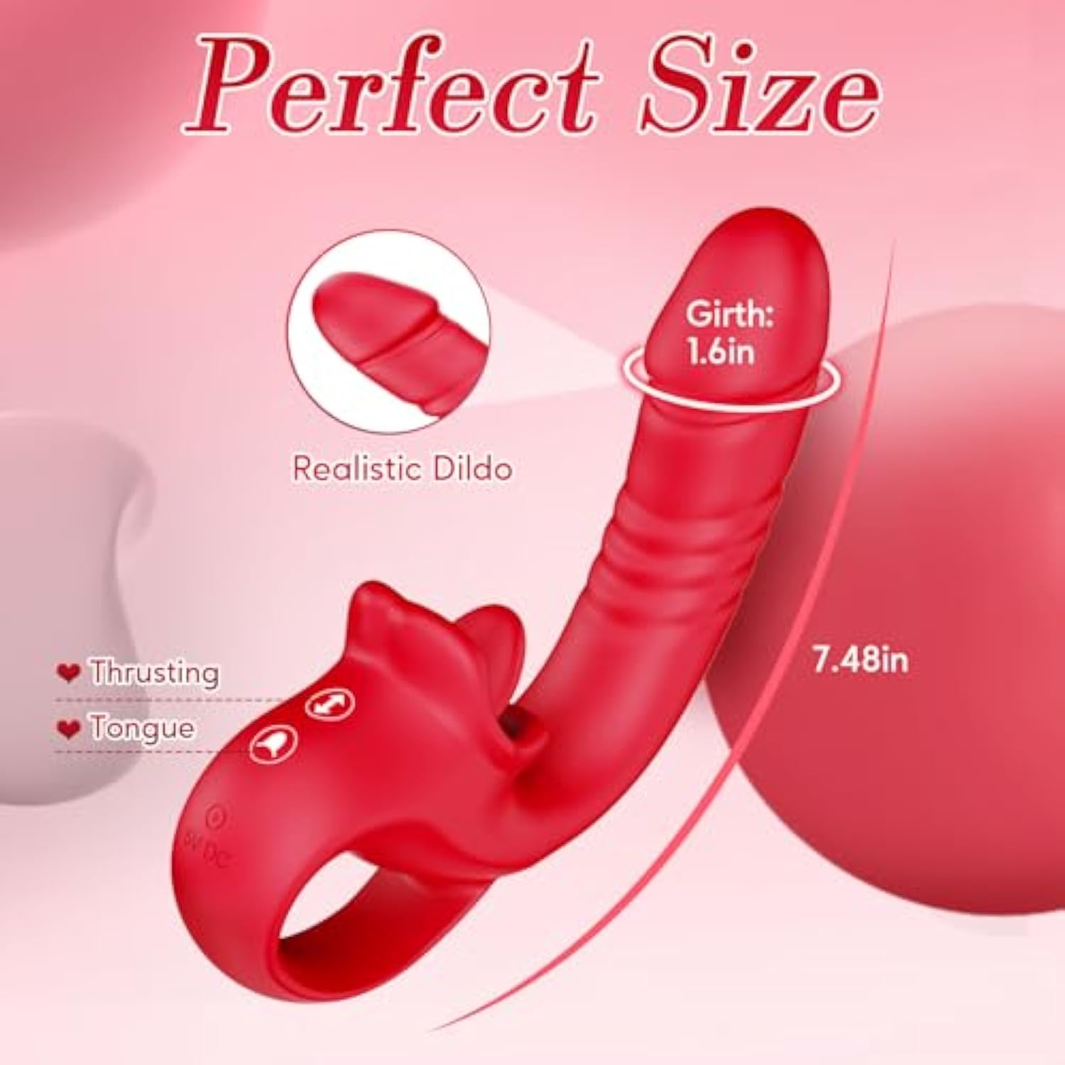 Thrusting Dildo Vibrator Sex Toys For Women, Dildos Adult Toys G Spot Clitoral Licking Vibrator With 10 Thrusting Vibration & 10 Tongue Licking Modes, Silicone Clitoral Stimulator For Couple (Rose)