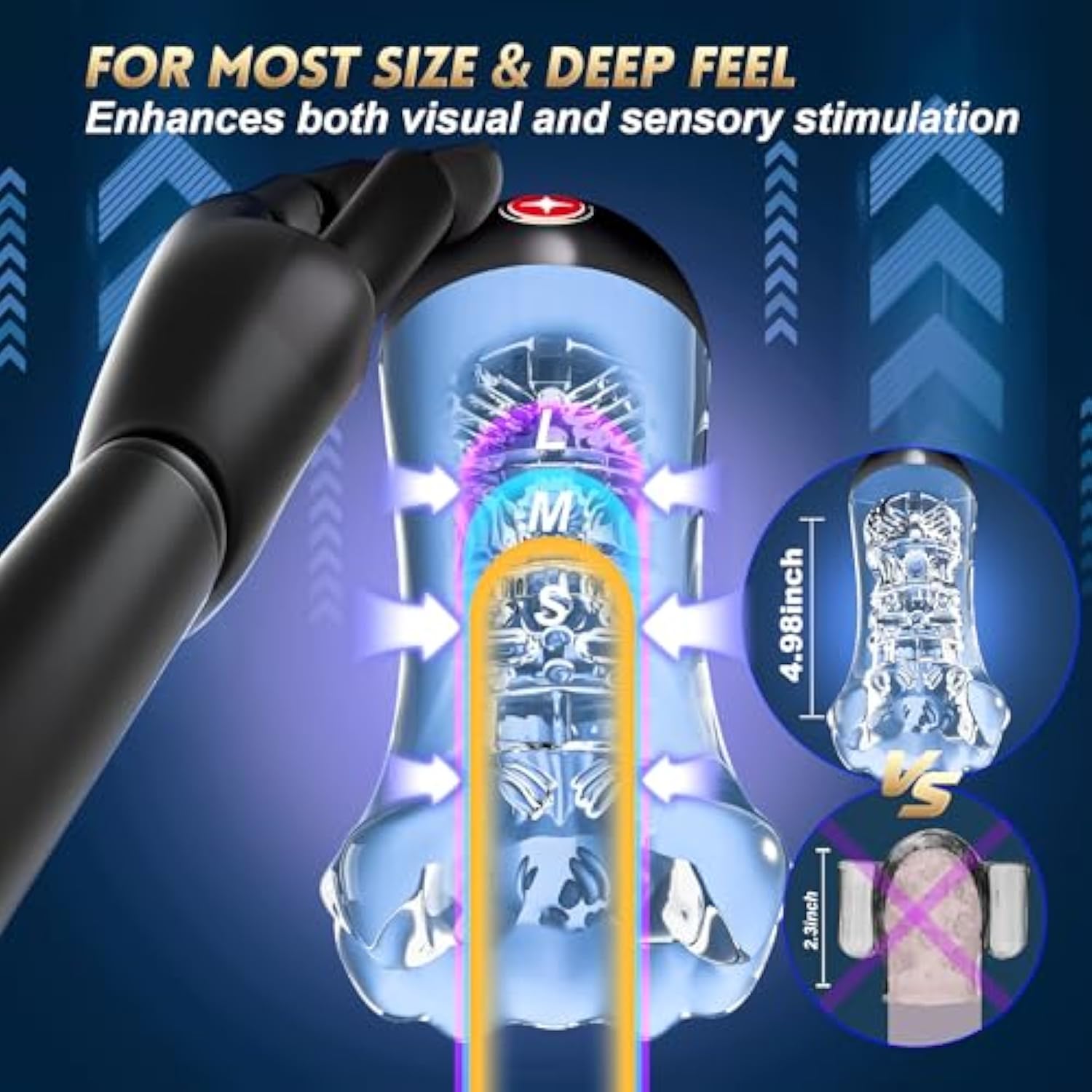 | Transparent Penis Vibrator: Our Upgraded Sex Toys For Men Features Transparent Sleeve Makes The Training Process Clear And Visiblener. Combine Vibrator + Male Masturbator + Trainer + App All In One, The Male Sex Toy Is Friendly To Beginners | | Lip Enter 360° Blowjob Fits Most Sizes: Visual Inner Pussy Pump Plump Mouth, Our Men Sex Toy Durable Sleeve Length Of 4.98” That Can Envelop Your Entire Penis. The Hand Free Male Masturbators’ 3D Grains Can Precisely Stimulate Your Glans Sponge | | 9 Vibrations Waterproof: Our Adult Toys Offer 9 Unparalleled Vibrations At Your Disposal To Awaken Your Glans Sensitivity. The Male Vibrator Will Be Your Manhood Enhancer, Offering Hours Of Fun Stably. Just Enjoy Sex Toy Men In The Bath Or Bedroom | | App With 4 Modes Add Friend: Diy-Vibrating Can Follow Your Finger-Swipe Trajectory; Video-Each Video Syncs To A Beat For Remote Control Vibrator; Sound-Any Sound Shifts Create Unique Beat; Recommend-Find The Most Popular Bands To Enjoy Mens Stroker | | Top Priority Of