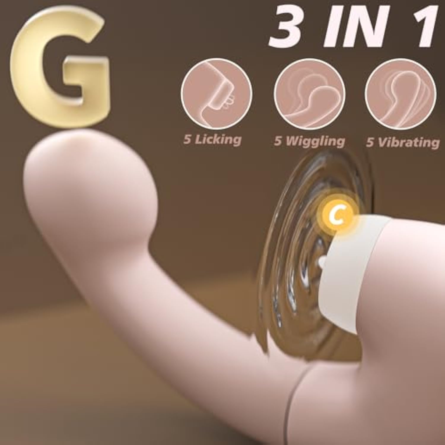 Triple Tech Women Pleasure Sex Toy – Vibrator For Women With Changeable Heads, 5 Licking, 5 Vibration & 5 Wiggling Modes, Multi-Stimulation Sex Toys For Clitoris, Nipple, G-Spot & Anal