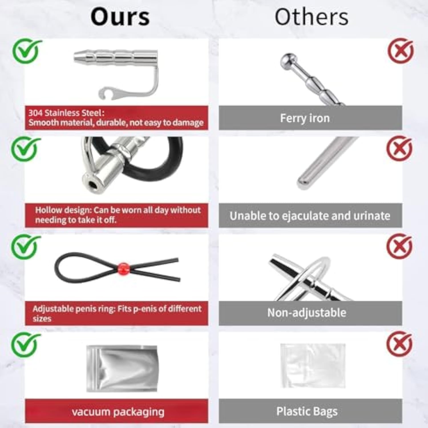| Sex Toys-Catheters Sounds? P-Enis Pulgs Surface Is Smooth And The Hollow Design Allows You To Wear It All Day Or Ejaculate Or Urinate Without Taking It Off. There Are 3 Different Sizes Of Urethral Plugs, To Meet The Different Needs Of Users At Different Stages, And Help You Widen Your Urethra Step By Step | | Medical Grade Materials: The Urethral Probe Is Made Of Medical-Grade 304 Stainless Steel, Which Has Been Processed And Polished Many Times, And The Tip Edge Is Smooth For Easy Insertion.And You Can Add Different Temperature Stimulation Experiences By Heating Or Cooling Stainless Steel Utensils? Note: Please Clean Carefully Before Each Use To Avoid Infection. | | Adjustable Cock Ring?Stainless Steel Urethral Plug Equipped With An Adjustable P-Enis Ring, It Can Be Fixed According To Different P-Enis Sizes.Sounding Toys Are Small And Easy To Carry?Not Easy To Slide Out. You Can Put It In Your Pocket Or Bags. When You Travel, You Can Carry The Male Urethral Plug Kit With You And Enjoy Orgasm At Any Time. | | Appearance Design: The Urethral Toy Is Hollow In Design, Which Is Convenient To Use, And The Layered Threads On The Surface Allow You To Experience Different Thread Pleasures When Inserting And Removing,The Stainless Steel Urethral Plug Has A Certain Weight, Giving You A Sense Of Falling When Using It | | Private Packaging: P-Enis Plug Is Suitable For Bedroom, Office, Mountaineering, Fitness, Study, With Private Packaging And Does Not Contain Any Sensitive Information. If You Have Any Questions, Please