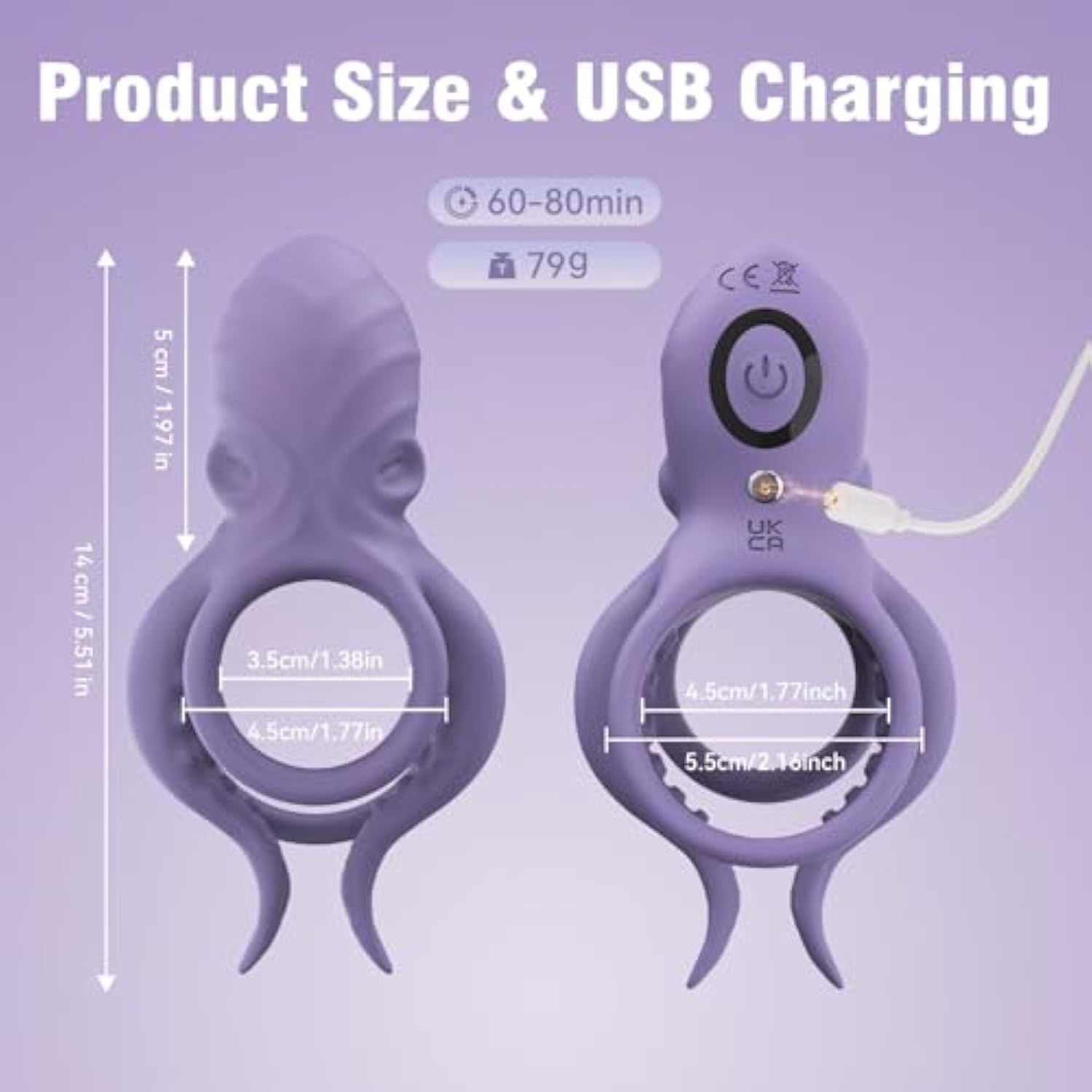 | [Versatile Stimulation]Penis, Testicles, C Spot, And G Spot- Paired With 2 Firmness Tentacles Rings And A Clamping Tentacles,The Octopus Vibrator Closely Stimulates The C-Spot.Featuring 9 Vibration Modes, It Brings Couples A Brand-New Experience Every Time. | | [Bio-Inspired Design] Inspired By The Design Of An Octopus. The Octopus’S Head Features A Powerful Motor That Generates Strong Vibrations. The Inner Walls Of The Ring Are Textured With Suction Cup Patterns. When Activated, It Wraps Around Your Penis Like An Octopus! | | [Three Rings In One] Two Complete Silicone Tentacle Rings Fit Perfectly, Wrapping The Penis And Perineum Respectively,Providing You With An Ultimate Comfortable Experience. The Addition Of A Semi-Enclosed Ring In The Middle Shaped Like Octopus Tentacles Offers An Experience Far Superior To Ordinary Products With Only Double Rings. | | [Premium Material] The Exterior Features High-Quality Waterproof Silicone With An Ipx6 Waterproof Design, Allowing Use Even In The Shower. The Interior Incorporates A Powerful Yet Silent Motor, Providing High-Frequency Vibrations While Maintaining Quiet Operation, Precisely Stimulating The Testicles Or Clitoris, Making It The Preferred Choice For Intimate Games Between Couples. | | [Creative Interactive Experience]Using A Stretchable Silicone Ring, It Wraps Around Your Penis, Reduces Blood Flow And Inhibits Blood Circulation, Enhances Endurance, Brings Longer-Lasting Satisfaction, Improves Firmness, Stamina, And Sexual Performance In Pleasure. | | [Comprehensive Post-Sales Service And Product Assistance] Discreet Packaging And To Ensure Your Privacy Security. Our Professional