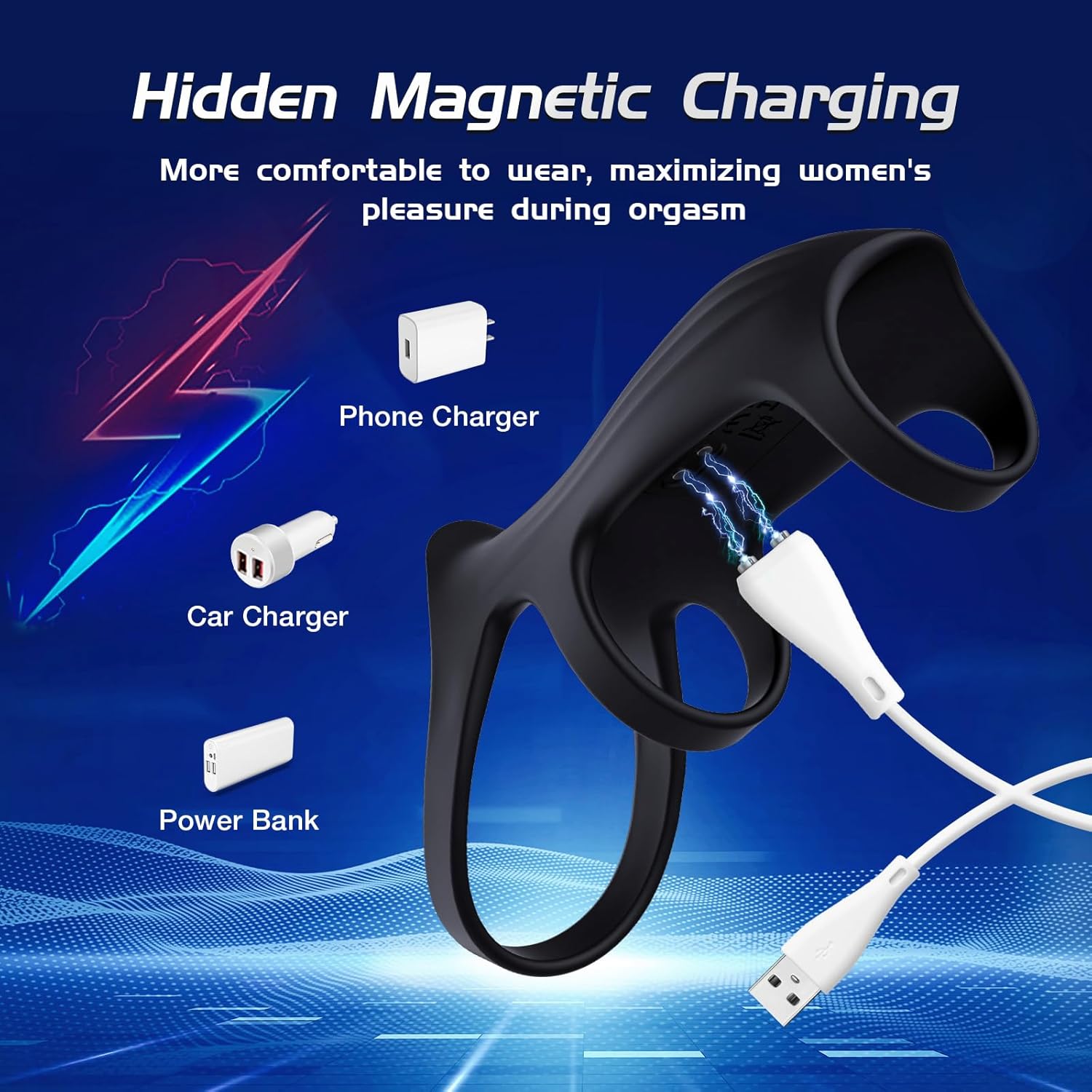 • ?Hidden Magnetic Charging Design, Make Pleasure More Comfortable?The charging port of this couples sex toy is hidden inside the thick ring, which is ifferent from other penis sleeves on the market. So there is no foreign body feeling during wearing and pleasure, which maximizes the pleasure of women during orgasm. Its upgraded magnetic charging port offers faster charging speed and stability, ensure smooth play
