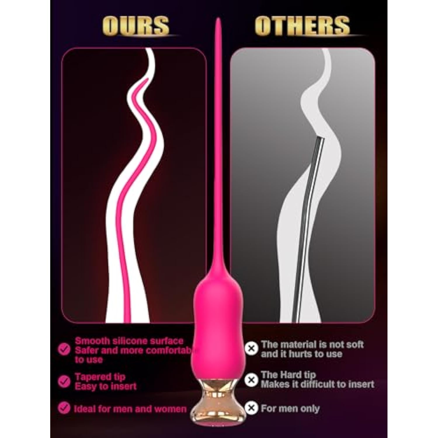 Exquisite Exterior Design: Urethral Sounds Vibrator Are Made Of Body-Safe Silicone And Golden Electroplated Parts, More Refined And Beautiful Design, This Urethral Dilator Differ From Other Traditional Vibrator Wand, Theirs Head Is Too Large For The Source To Be Dispersed To Stimulate The Deeply, This Urethral Plug Penis Vibrator Source Concentrates On Deep Stimulation Of The Urethral, Anal And Clitoris, Soft And Smooth Silicone Surface With End Of The Tapered Help Easy To Insert, Also, Flexible Silicone Easily Fits The Shape Of The Sweet Point To Get To Your Own Point | | Ten Vibration Modes And Easy To Control: Vibrating Urethral Sounds Male Sex Toys Has Ten Different Intensities For Your Choice, This Urethral Stretcher Vibrator Is Powerful But Quiet Enough For Your Discreet Play, Different Vibration Modes From Gentle To High Speed Help You Discover Your Vibe And Simple Button Is Easy To Control, Choose Your Comfortable Rhythms And Enjoy Whisper Quiet Vibrations Will Send Throughout Your Erogenous Zones | | Versatile Sex Toys For Solo Or Couples: Versatile Penis Plug Vibrator Sex Toy Can Get Whole Body Massage For Solo Or Couples Pleasure, Urethral Sound Vibrator Not Only Stimulate Urethral And Prostate For Mens Vibrator, But Also Comfortable To Operated And Transforms All Manner Of Foreplay Fun From Nipples, Clitoral, G-Spot And Vibrating Anal Plug Sex Toys When Couples Sex Play, There Are Various Interesting Ways To Play, Deep Exploration From Teasing To Climax | | Daily Waterproof And Portable: Vibrating Urethral Sound Penis Plugs Sex Toys Is Daily Waterproof And Easy To Clean After Use, Urethra Sounding Toys Is Easily Inside Your Handbag When You’Re On The Go, Making It Enjoy Anywhere And Anytime | | Discreet Package And Magnetic Usb Rechargeable: The Magnetic Charging Has Been Adopted To Make The Charging Of This Urethral Sounding Vibrator Adult Sex Toy More Convenient, The Urethra Sound Sex Toy Can Be Used For 60 Minutes After Full Charge In 1.5 Hours, The Discreet And Elegant Gift Box Package Of The Urethral Dilators Male Vibrator Sex Toy Without Any Words Or Pictures, You Can Share Private Fun With Your Partner | |