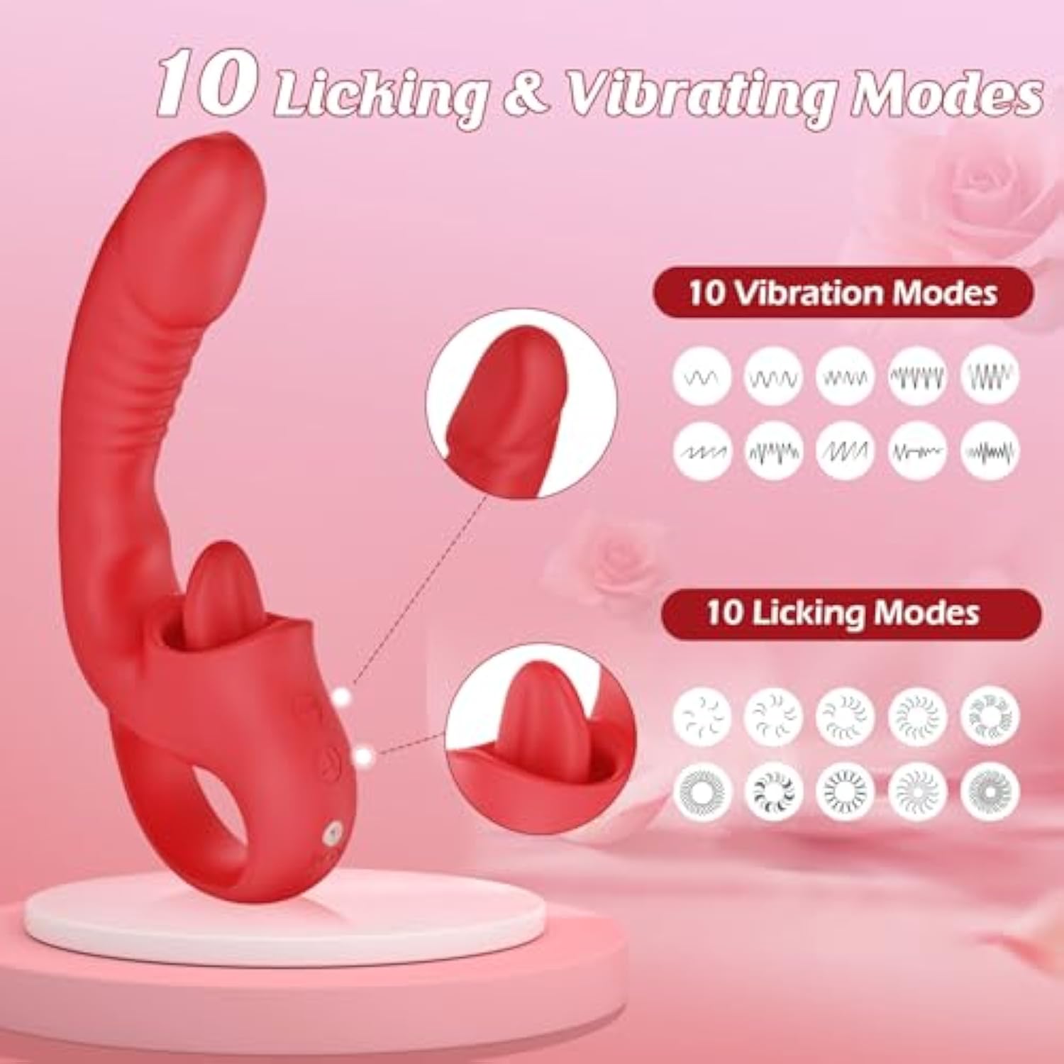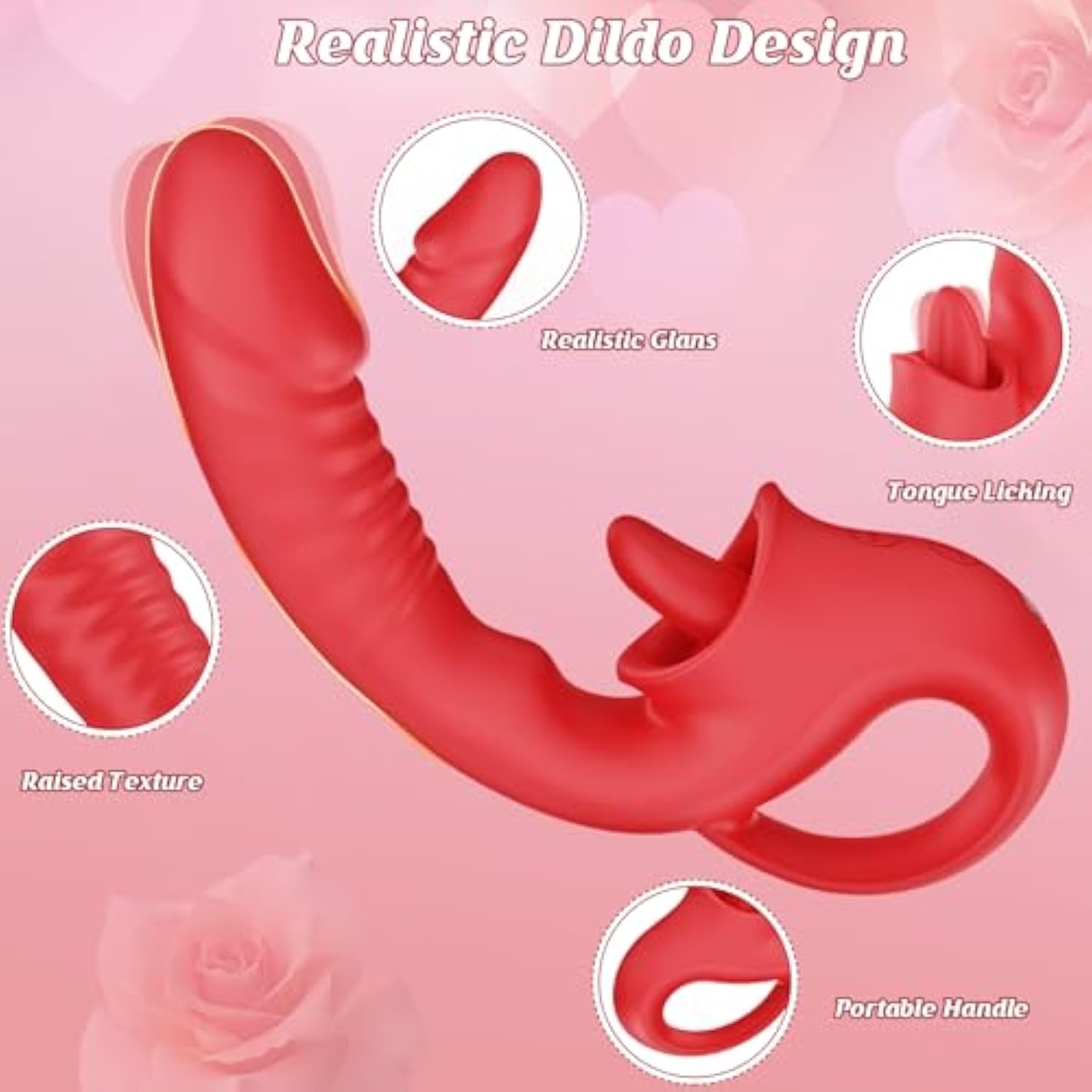 | Realistic Texture Multi-Point Stimulation: The Uniquely Designed Wrinkled Texture Expands The Stimulation Area And Region. The Elongated Dildo And Flexible Tongue Can Better Stimulate The G Spot And Clitoral. It Can Also Be Used To Stimulate Areas Such As The Nipples And Anal. | | 10 Licking Vibrating Modes With Dual Motors: This Vibrator Is Powered By Two Powerful Motors, Offering 10 Intense Tongue-Licking And Vibration Modes. Whether You Prefer Gentle Or Wild, It’S All Included, And You Control The Rhythm. | | Unique Handle Design: This Female Vibrator Features A Portable Handle Design That Is Comfortable To Hold And Prevents Slippage During Use, Improving Efficiency. You Or Your Partner Can Easily Control And Adjust It. | | Safe Silicone Soft Material: Silicone Vibrators Are Smooth To The Touch, Non-Toxic, Odorless, And Elastic, So There Is No Need To Worry About Damaging The Skin. They Can Be Bent And Folded To The Desired Angle During Use. | | Waterpoof Usb Charger: The Adult Sex Toys With Waterproof Design, You Can Directly Use It In The Shower And Bathtub. You Only Need To Wash It With Water Before And After Each Use.Usb Fast Charging, You Can Recharge It Easily. | | Discreet Packaging: To Protect The Privacy Of Our