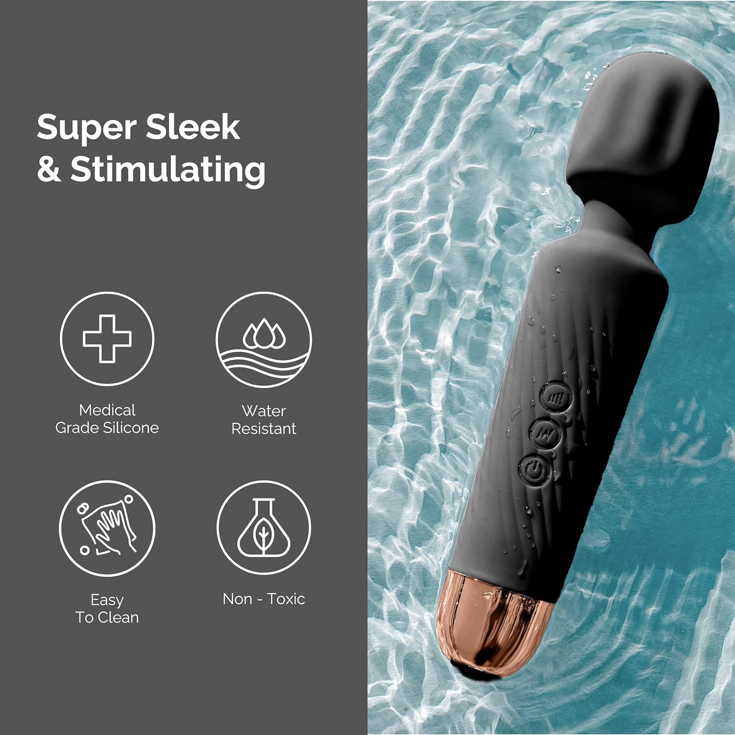 Vibrator Wand Clit Stimulator, 20 Patterns & 8 Speeds – Quiet (Black)