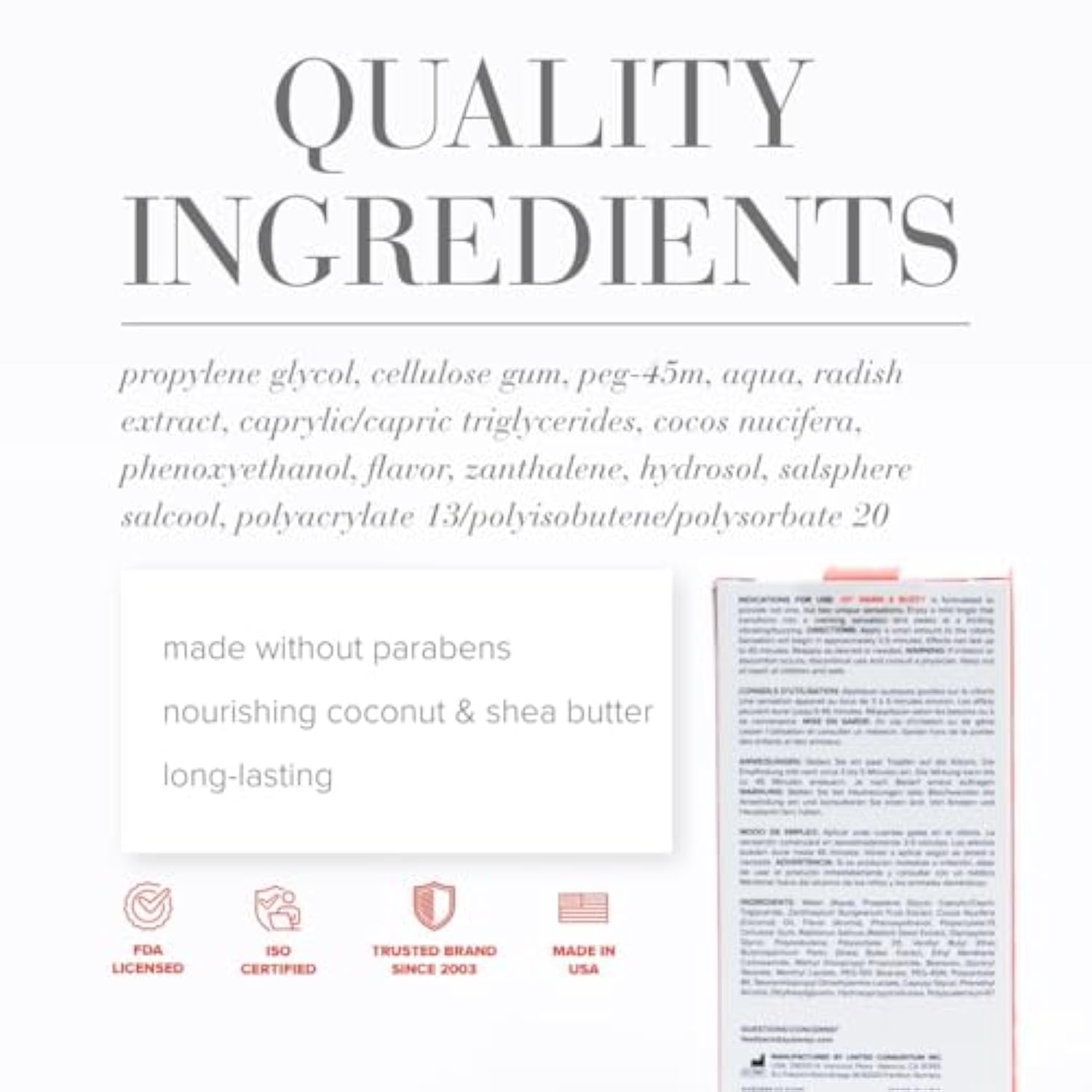 Warming Clitoral Gel – Delivers Progressive Warming And Buzzing Tingling Sensations For Heightened Clitoral Stimulation. | | Water Based Formula – Smooth Clitoral Gel With Cocoa And Shea Butters; Free From L-Arginine, Parabens, And Harsh Additives. | | Fast Acting Long Lasting – Builds Intense Excitement Within Minutes; Sensations Last Up To 45 Minutes. | | Compact Travel Friendly – Discreet 10 Ml Tube Ideal For Solo Use, Couples Intimacy, And On-The-Go Arousal. | | Made In Usa – Produced In Fda-Registered, Iso-Certified Facilities For Trusted Sexual Wellness And Safety. | |